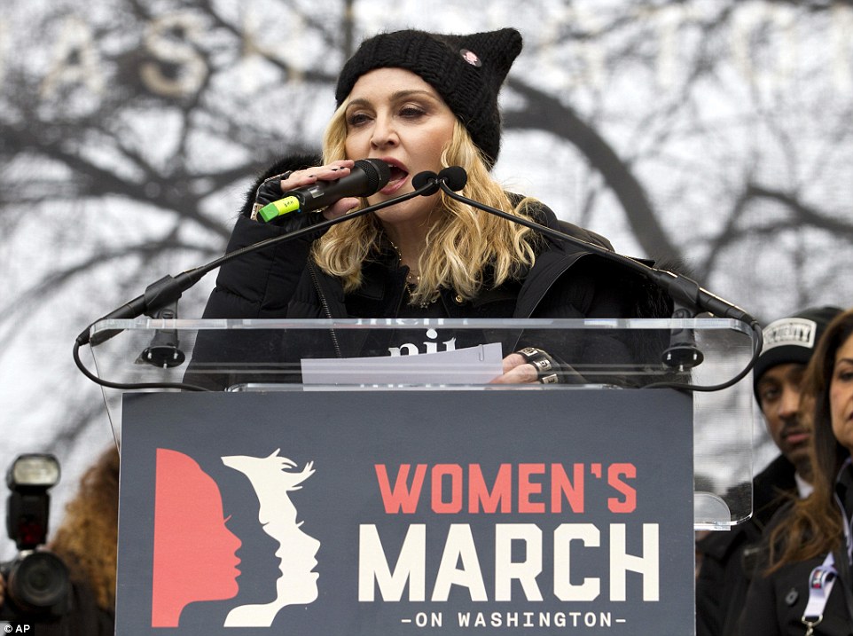 وجهت النجمة العالمية مادونا رسالة قوية للرئيس الامريكي الجديد دونالد ترامب أثناء خطابها في التجمع السياسي السنوي Women's March في ولاية واشنطن الأمريكية، والذي حضره ما يقرب من 500 ألف شخصًا.