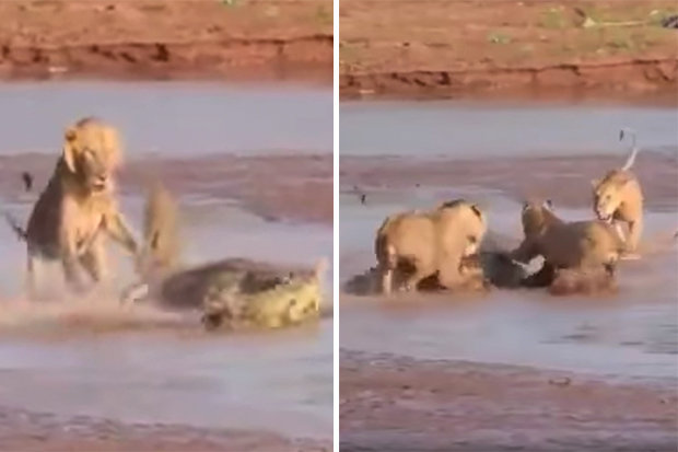 وحاصرت الأسود الثلاثة التمساح، الذي حاول الدفاع عن نفسه وغرس أنيابه في قطيع الأسود، لكن دون جدوى، حيث انقض الأسود على التمساح وقاموا بغرس أنيابهم في جسده، وبدا في نهاية الفيديو أن التمساح تحول إلى وجبة لقطيع الأسود.