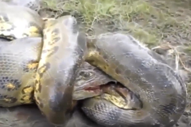 وظهرت الأناكوندا في الفيديو وهي تلف جسدها حول التمساح على ضفة نهر، وتضيق الخناق عليه شيئا فشئ، لكن التمساح رفض الاستسلام لها بدون محاولة الدفاع عن نفسه، حيث ظهر في الفيديو وقد أطبق فكيه على وجه الأناكوندا، وكان يقوم بمضغه بشكل متواصل، على أمل أن يتمكن من الفرار من قبضتها.