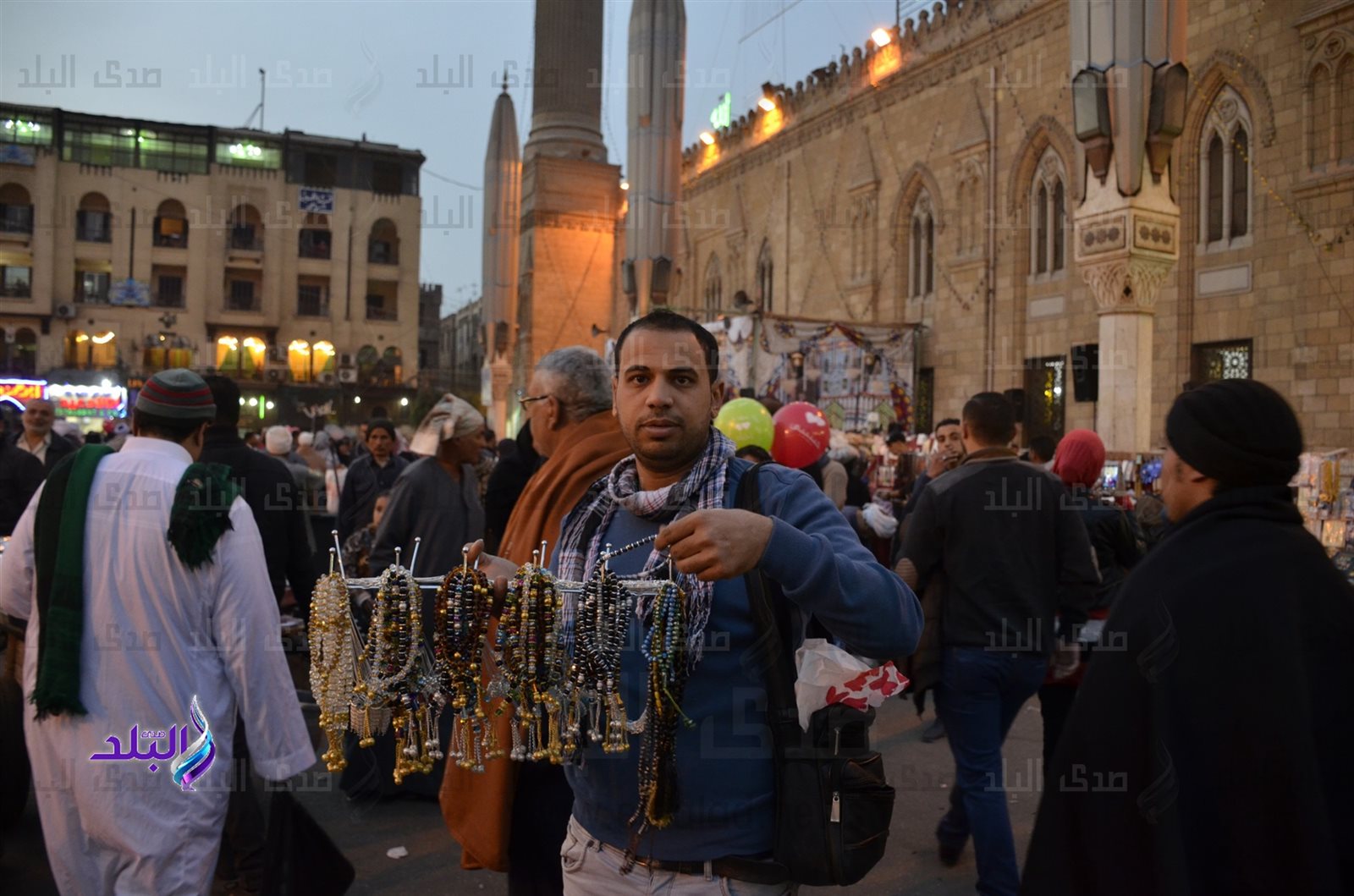 شهد محيط مسجد الحسين انتشار العشرات من الباعة الجائلين الذي افترشوا بضائعهم من سبح، إكسسوارات، بخور، أطعمة، مشروبات، إضافة إلى ألعاب الأطفال والطراطير، وغيرها، وسط توافد المئات من أبناء الطرق الصوفية للاحتفال بقدوم راس الإمام الحسين رضي الله عنه وسط تشديدات أمنية مكثفة.