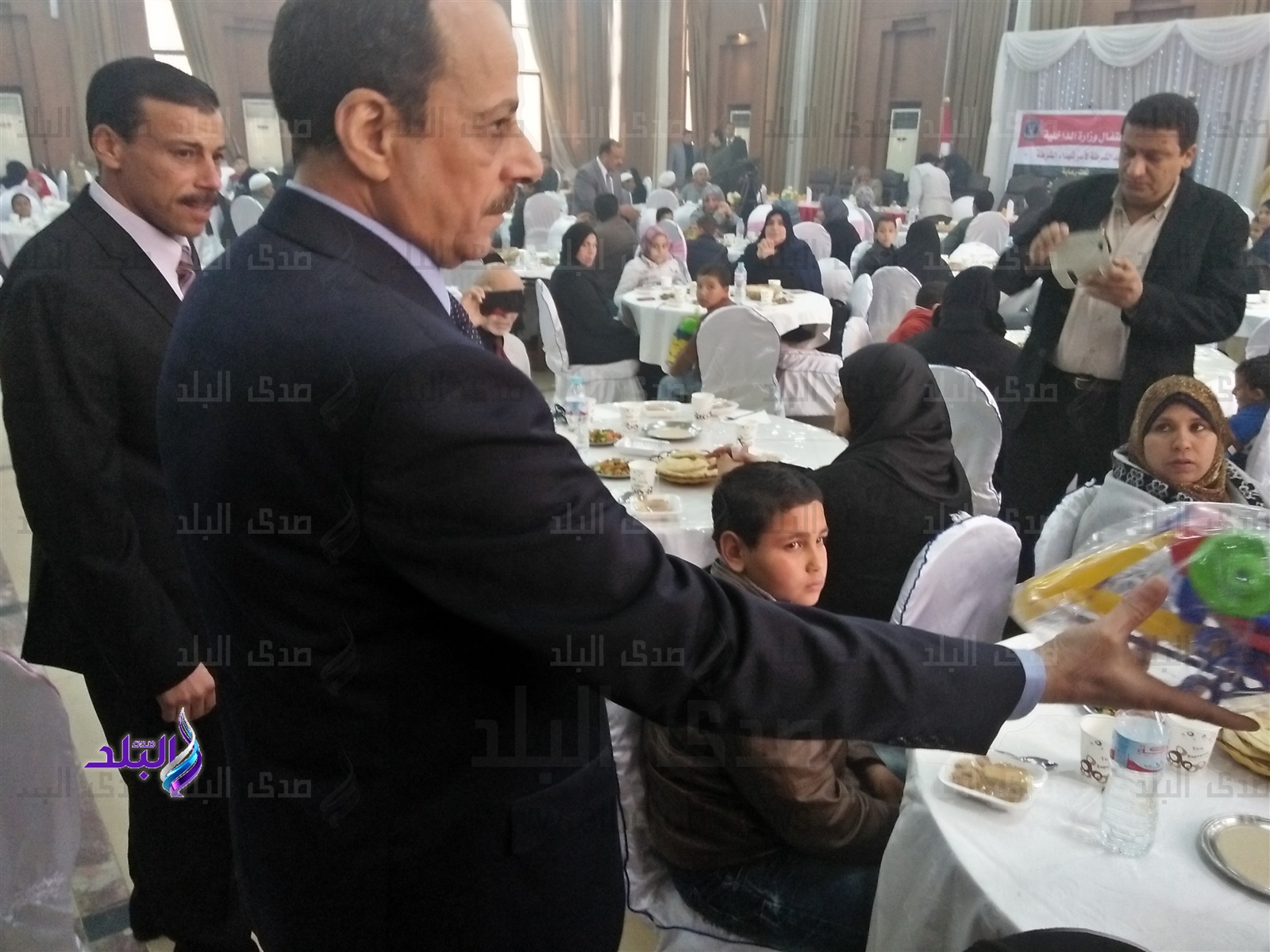 وقام اللواء خالد أبو الفتوح مدير الأمن بتوزيع هدايا على أبناء الشهداء تكريما لهم كما سلم بعض الألعاب لأبناء الشهداء المتواجدين بالحفل .