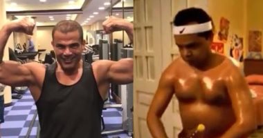 محمد هنيدي يستعرض عضلاته ساخرًا على طريقة عمرو دياب