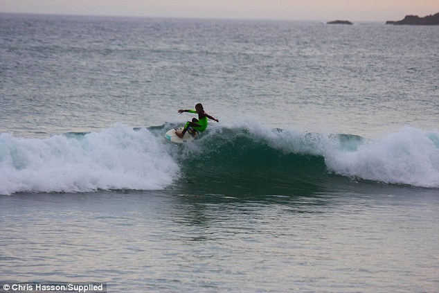 وأمسك "كريس هوسون" بكاميرته ليوثق لحظات سعادة طفله على شاطئ "Samurai" الأسترالي، بعدما لاحظ عند تقريب الصور وجود ظل أسود كبير أثناء احدى الموجات.