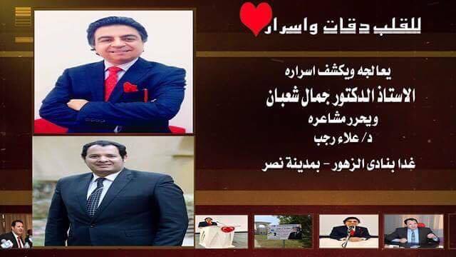 جمال شعبان وعلاء رجب فى ندوة «القلب دقات وأسرار» اليوم بنادي الزهور