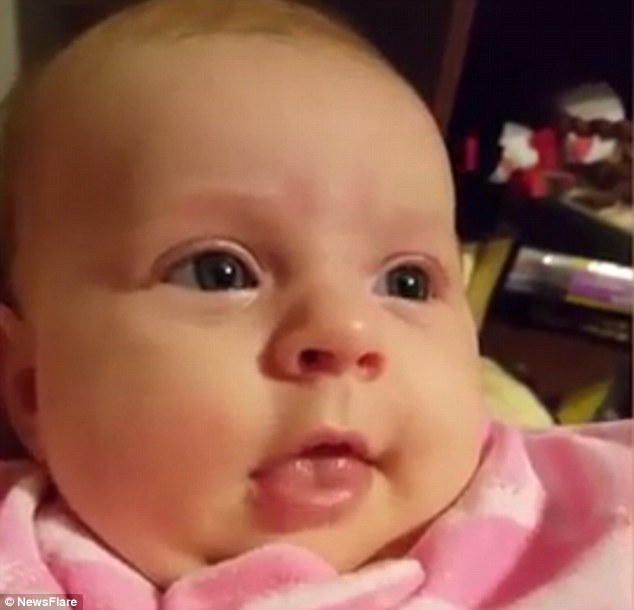 وتمكنت الرضيعة في بداية الفيديو من قول الجملة، وبعدها واصل والدها تكرارها أمامها كي تنطقها مرة أخرى.
