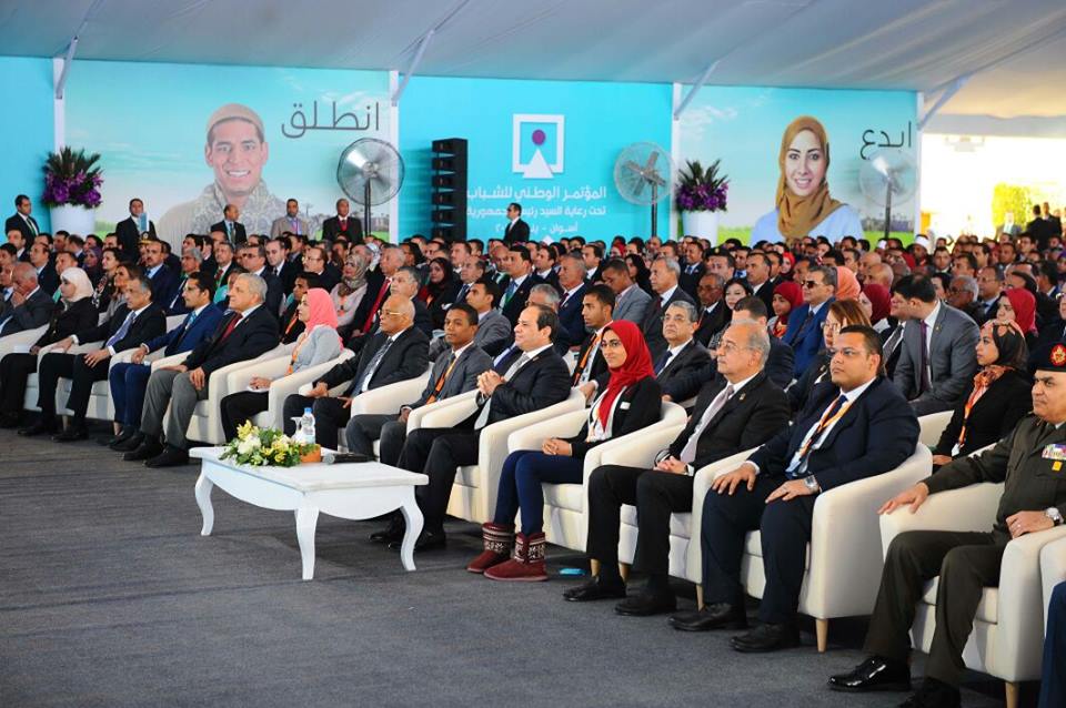 وكان الرئيس السيسى افتتح اليوم أعمال المؤتمر الوطني الدوري للشباب، والمنعقد يومي 27 و28 يناير الجاري بأسوان، بمشاركة مئات من شباب الجامعات والأحزاب السياسية، وذلك بحضور رئيس مجلس النواب ورئيس مجلس الوزراء ومحافظ البنك المركزي، والعديد من الوزراء وكبار مسئولي الدولة وأعضاء مجلس النواب، والقيادات السياسية والخبراء الاقتصاديين وقيادات الأحزاب السياسية والمجتمع المدني.
