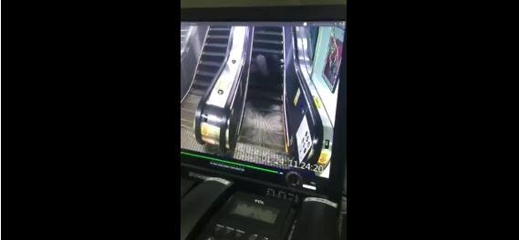 عجوز يسقط عدة مرات على السلم الكهربي.. فيديو