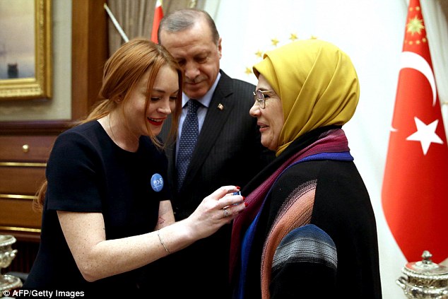 التقت الممثلة الأمريكية ليندسي لوهان بالرئيس التركي رجب طيب أردوغان، وبالطفلة السورية بانا العابد، التي كانت تنقل الأوضاع من داخل مدينة حلب السورية قبل أن تتمكن من الخروج إلى تركيا.