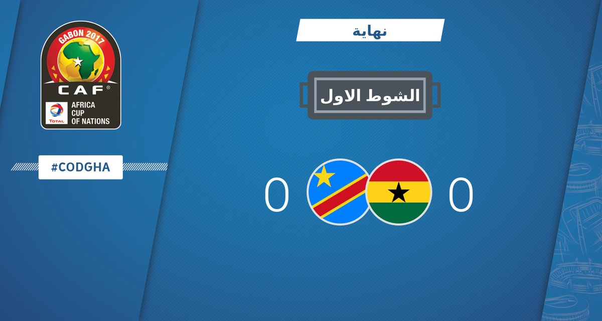 وشهدت الدقائق الاخيرة للشوط الأول كرة مرتدة خطيرة لمنتخب الكونغو عن طريق جونيور كابانانجا وأنتهت الى ضربة مرمى للمنتخب الغاني بدون خطورة .