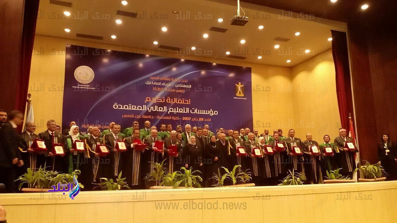 ذلك تحت رعاية رئيس مجلس الوزراء المهندس شريف إسماعيل وبحضور الدكتور أحمد زكي بدر وزير التنمية المحلية والدكتور أشرف حاتم الأمين العام للمجلس الأعلى للجامعات والدكتورة يوهانسن عيد رئيس مجلس إدارة الهيئة والدكتورة عزة آغا نائب رئيس الهيئة لشئون التعليم العالي ومقرر الإحتفالية ورؤساء الجامعات والنواب وعمداء الكليات بالجامعات.