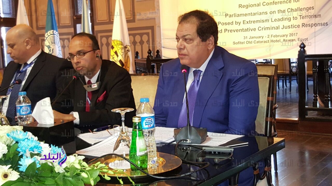 محمد أبو العينين خلال المؤتمر البرلماني الإقليمي لمكافحة الإرهاب: