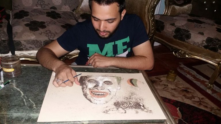 احمد هو شاب بالعشرينات من عمره ، موهوب بالرسم صاحب اسلوب جديد استطاع ان يتميز وينفرد برسومات جديدة من خلال مواد غير تقليدية فلم يلجأ الي الرسم بالاقلام الرصاص والالوان والفحم وانما استخدم التوابل والملوخية الناشفة والبهارات والملح والفلفل والنسكافية القهوة والشاي في رسم البورتريهات والصور الفنية المختلفة.