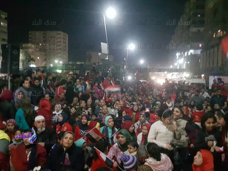 وأغلق الجماهير الشوارع بالقاعدة فى ميدان الثورة بكفر الدوار الدوار والتفوا حول شاشة العرض حاملين اعلام مصر مرددين هتافات تحيا مصر.