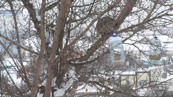 قطة ذكية تسرق قطعة "لحم" من "عش طائر" ..فيديو