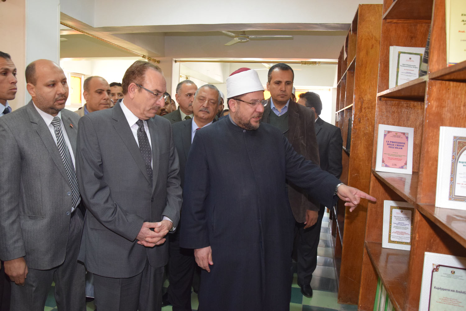 وزير الأوقاف والمحافظ يفتتحان مكتبة إسلامية و3 مساجد ببنى سويف .. صور