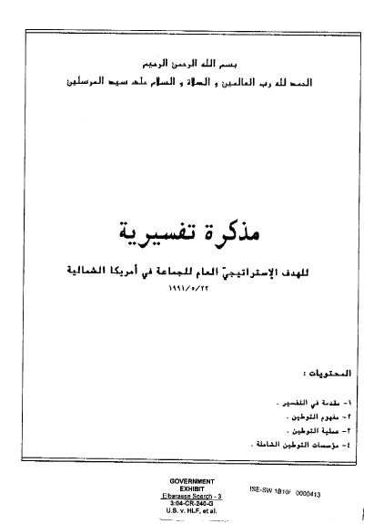 وحملت الوثيقة المنشورة اسم "مذكرة تفسيرية.. الهدف الاستراتيجي العام للجماعة في أمريكا الشمالية"، وكانت بتاريخ 22 مايو 1991، ومقدمها حمل اسم محمد أكرم، الذي قال إن المذكرة "محاولة لتفسير ما تم اعتماده في مؤتمر 1987".