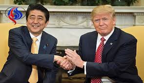 التقى الرئيس الأمريكي دونالد ترامب، ورئيس الوزراء الياباني شينزو آبي، خلال مباحثات استمرت يومين، ناقشوا خلالها أفق تقوية شراكة بلديهما الممتدة لعقود من الزمن، بعدما تغذت مخاوف طوكيو من تأثر علاقتها بواشنطن، جراء وصول ترامب إلى البيض الأبيض، والتباس مواقف الجمهوريين من ملفي التجارة والأمن.