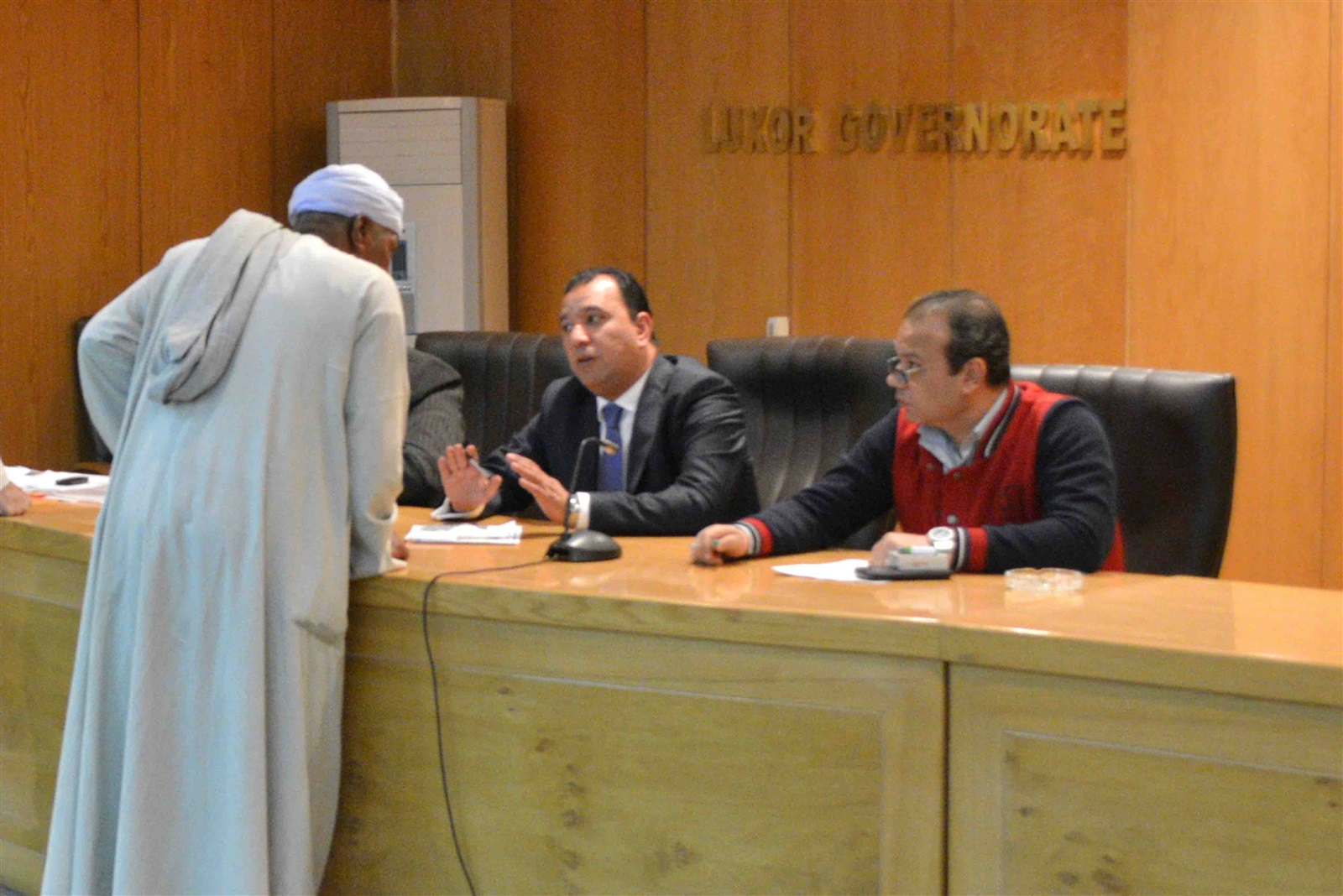 واستمع محافظ الأقصر، خلال اللقاء، إلى شكاوى المواطنين ومتطلباتهم فى قطاعات الصحة والتعليم والمرافق والإسكان والبنية التحتية والزراعة ومياه الشرب والصرف الصحى والكهرباء، كما استمع إلى مطالب عدد من الأسر الأولى بالرعاية.