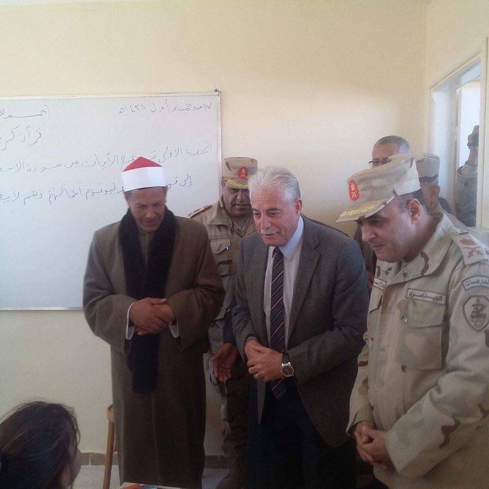 وأضاف خلال افتتاح معهدين أزهريين اليوم أحدهما معهد "الشهيد أسامة علي عبد العظيم" للتعليم الأساسي بمنطقة سهب والأخر معهد الشهيد "حاتم ماهر مازن" بمنطقة الطرفة التابعين لمدينة سانت كاترين أن القوات المسلحة انتهت من توسيع طريق نويبع طابا المعرف باسم "طريق النقب " والإسكان تم الانتهاء من إنشاء 2012 وحدة سكنية بمدن "رأس سدر, الطور, دهب" وجار إنشاء 4 آلاف وحدة أخري بمدن "رأس سدر, أبوزنيمة, دهب" كما تسعي القوات المسلحة للقضاء علي مشكلة نقص مياه الشرب بالمحافظة من خلال إنشاء عدد من محطات التحلية حيث تم الانتهاء من إنشاء محطة لتحلية المياه بمدينة أبورديس بطاقة 30 ألف م2 في اليوم وحفر 16 بئر مياه بوديان المحافظة.