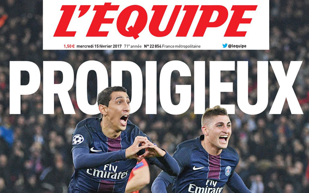 ووضعت الصحيفة الفرنسية أبرز لاعبين في المباراة علي غلاف الصحيفة اليوم وهم لاعب الوسط الإيطالي ماركو فيراتي والذي قدم اداء مبهرا في وسط الملعب،والأرجنتيني أنخيل دي ماريا صاحب الهدفين الرائعين في مرمى الألماني تير شتيجن.