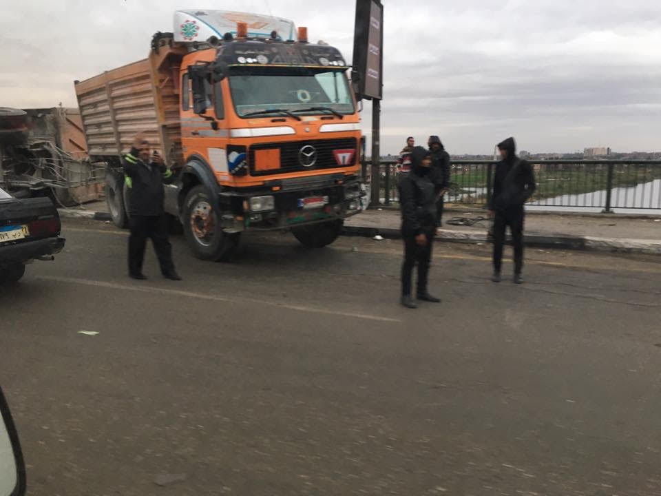 تدخلت منذ قليل، وحدات الإغاثة المرورية وأوناش المرور لرفع حطام حادث تصادم سيارة نقل مع 3 سيارات أعلي الطريق الدائري بمنطقة المنيب.