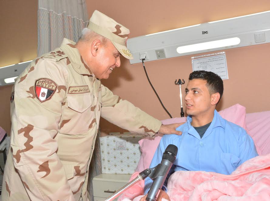 قام الفريق أول صدقي صبحي القائد العام للقوات المسلحة وزير الدفاع والإنتاج الحربى، يرافقه عدد من كبار قادة القوات المسلحة، بزيارة المصابين جراء العمليات الإرهابية في سيناء من أبطال القوات المسلحة والذين أصيبوا أثناء أدائهم لمهامهم، ويخضعون للعلاج حاليًا بمستشفيات القوات المسلحة.