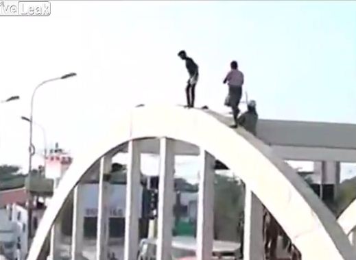 نشر موقع "لايف ليك" مقطع فيديو يظهر شابا هنديا أقدم على الانتحار قفزًا من أعلى كوبري يطل على أحد الشوارع الرئيسية فى الهند، بعدما تملكه الإكتئاب .