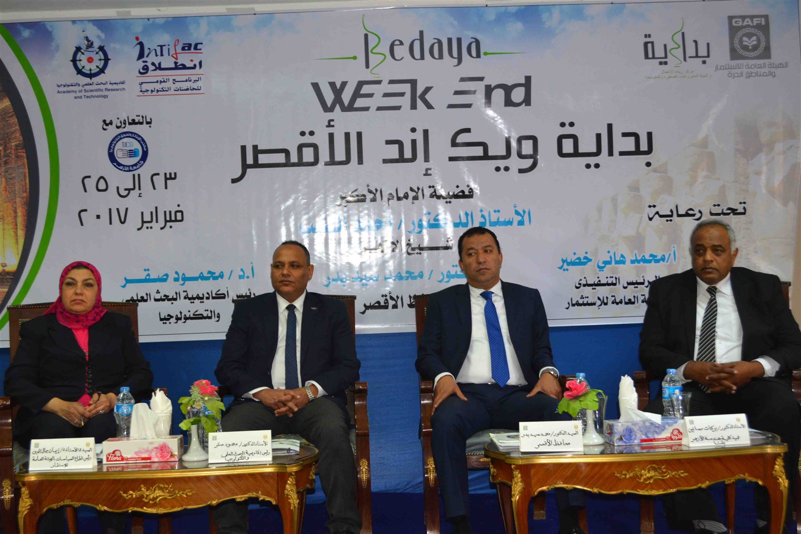 انطلقت فعاليات برنامج بداية ويك اند بمحافظة الأقصر، والذي يستمر حتى يوم 25 فبراير الجاري، تحت رعاية فضيلة الإمام الأكبر الشيخ أحمد الطيب شيخ الأزهر الشريف، وبحضور كل من إيمان جمال الدين، رئيس قطاع السياسات بهيئة الاستثمار، والدكتور محمود صقر، رئيس أكاديمية البحث العلمى والتكنولوجيا، والدكتور بركات حسانين، عميد كلية هندسة الأزهر بقنا، نائبًا عن شيخ الأزهر، والدكتور محمد بدر، محافظ الأقصر.