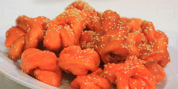 * تقلى في الزيت ثم توضع في الشربات وترش بالسمسم وتقدم