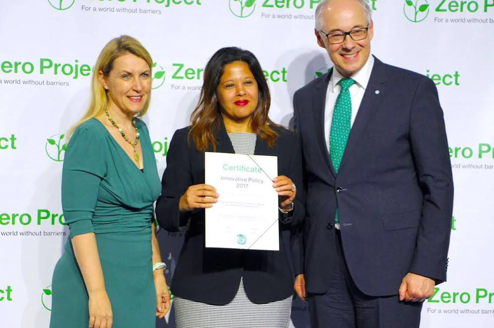 في إطار اهتمام الدولة بتمكين الأشخاص ذوي الإعاقة ودمجهم مجتمعيًا ليصبحوا أعضاء فاعلين في المجتمع، تم اختيار جمهورية مصر العربية مُمثلة في وزارة الاتصالات وتكنولوجيا المعلومات من ضمن العشر دول الأكثر ابتكارًا في مجال سياسات توظيف الأشخاص ذوي الإعاقة، لتفوز بجائزة Zero Project العالمية لعام 2017، والتي تُمنح للمشروعات التي من شأنها إزالة الحواجز والعوائق بين الأشخاص ذوي الإعاقة والمجتمع من خلال حلول مبتكرة.