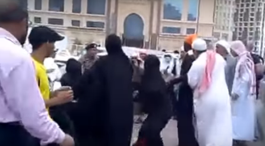 شاهد.. شجار عنيف بين رجال ونساء بالقرب من الحرم المكي
