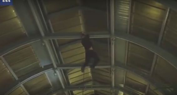 ظهر الشاب آرون جونز في مقطع الفيديو وهو يقوم بتسلق السقف على ارتفاع 8 أمتار وظل يتنقل بين الاعمدة وفي النهاية اختل توازنه وسقط على الأرض وتعرض لكسور بالغة في العمود الفقري والرقبة.