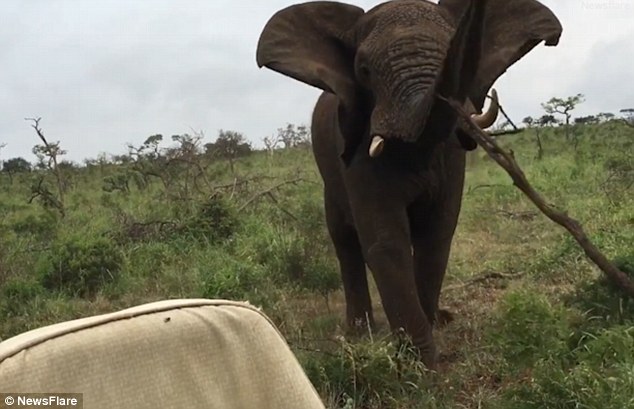 وأظهر مقطع فيديو نشرته صحيفة "ديلي ميل" البريطانية، وتم التقاطه في وقت سابق من هذا الشهر، الفيل وهو يتوجه ناحية سيارة السفاري، التي كانت مركونة في المنتزه، فيما كانت واحدة من الركاب تقوم بتصويره؛ وفجأة اقترب الفيل من شجرة قريبة من السيارة وقسمها إلى نصفين قبل أن يلتقط أحد أفرعها ويلقي بها على تلك الراكبة بعنف، فيما أخذ المرشد المرافق لها يطلق صافرات للفيل لإيقافه عن التسبب في مزيد من الأذى.