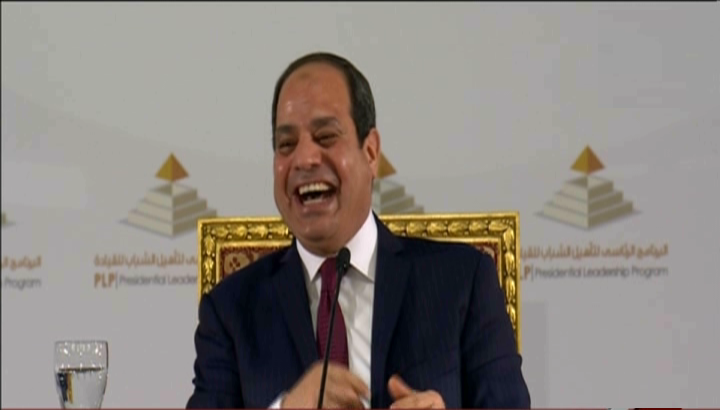 وتساءل السيسي قائلا: "مين اللي سأل السؤال ده؟"، إلا أنه لم يجب أحد على سؤاله، ما دفعه للضحك.