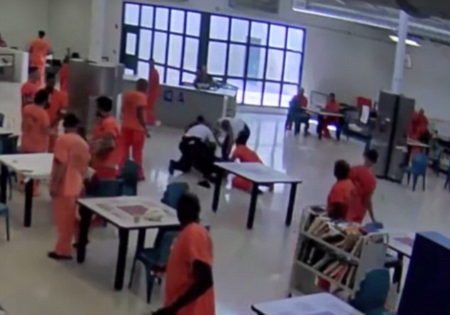 وبعدها حاول السجين لكمه، لكن بقية السجناء تدخلوا وساعدوا الشرطي على الإطاحة بمهاجمه أرضا، وتثبيته لحين وصول الدعم.