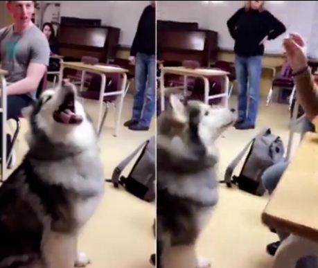 نشرت صحيفة "ديلي ميل" البريطانية مقطع فيديو طريف يظهر كلبا ذكيا يقول لصاحبته "أنا أحبك"، فى أحد الفصول الدراسية بكندا، بعدما كررت الفتاة كلمة "i love u" عدة مرات.