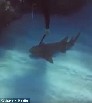 نشرت صحيفة "ديلي ميل" البريطانية مقطع فيديو صادم يظهر غواص شجاع يدعى "بريت جونسون" 30 عامًا انتزع سكينة من رأس سمكة قرش فى قاع المياه بجزر "كايمان" البريطانية.