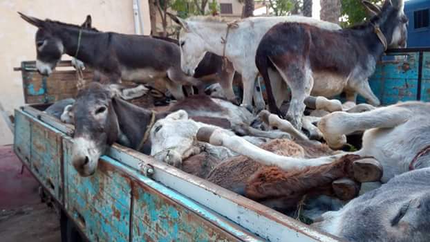 تمكنت أجهزة الأمن بالمنيا من ضبط سيارة محملة بعدد من الحمير المذبوحة والحية بقرية دير جبل الطير بسمالوط أثناء توقفها أمام أحد منازل أهل القرية لتسويقها.