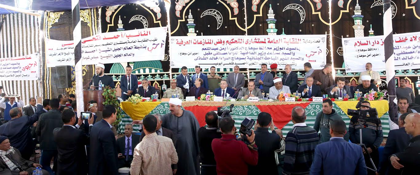 وقال: إننا نقف جميعا سد منيعا لسد وساوس الشيطان ونقضي على جهوده التي اسمرت عبر سنوات طويلة في إيقاع العديد من الضحايا وسفك الدماء والخصومات وهو ما يوجب علينا جميعا بعد أن وصلنا الي هذه المرحلة أن نسجد شكرا لله على إتمام كل مصالحة على أرض سوهاج.