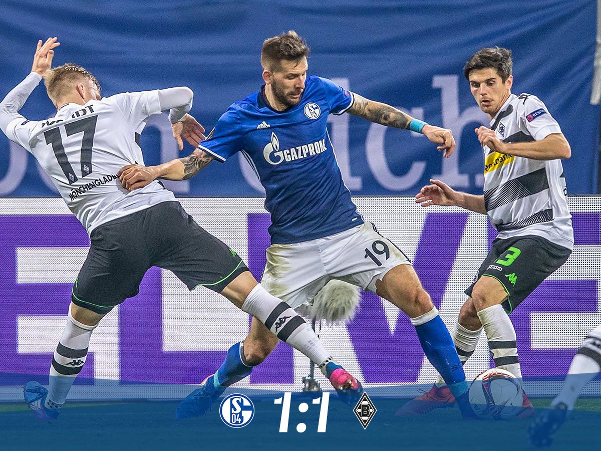 تعادل فريقا شالكه ومواطنه بروسيا مونشنجلادباخ الألمانيين بهدف لكل منهما فى المباراة التى جمعت بينهما فى ذهاب دور الـ16 من بطولة الدورى الأوروبى لكرة القدم .