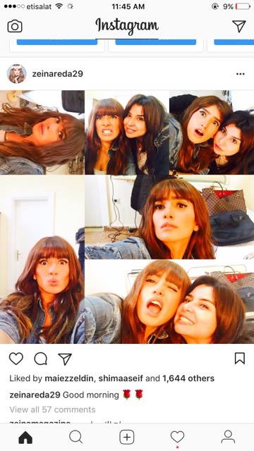 شاركت الفنانة زينة جمهورها من خلال نشر صورة عبر صفحتها الشخصية على موقع التواصل الاجتماعي "إنستجرام" بصحبة صديقاتها، وهي تظهر في مواضع مختلف بأشكال غير معتادة.