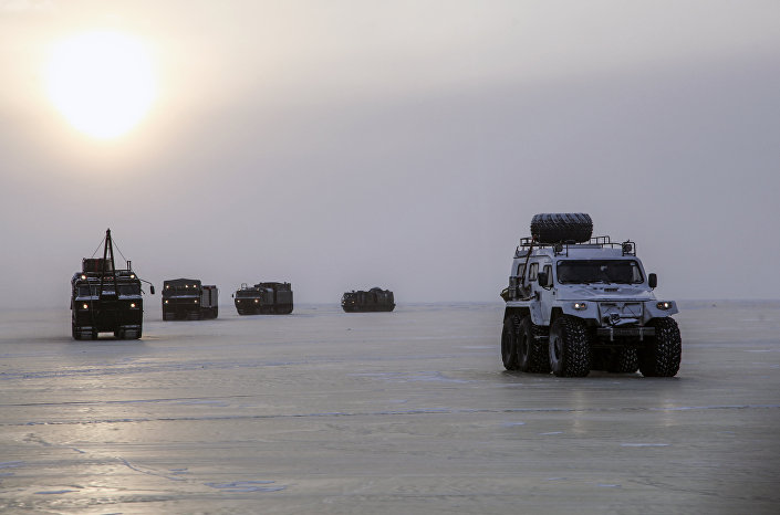 وتمكن ممثلو وزارة الدفاع الروسية والمؤسسات الصناعية المنتجة للتكنولوجيا العسكرية الحديثة، من قطع مسافة 1140 كيلومترا، في منطقة يغطيها الجليد فوق بحر لابتيف والمنطقة الساحلية المحيطة به، بواسطة آليات مخصصة لعبور المستنقعات الجليدية.