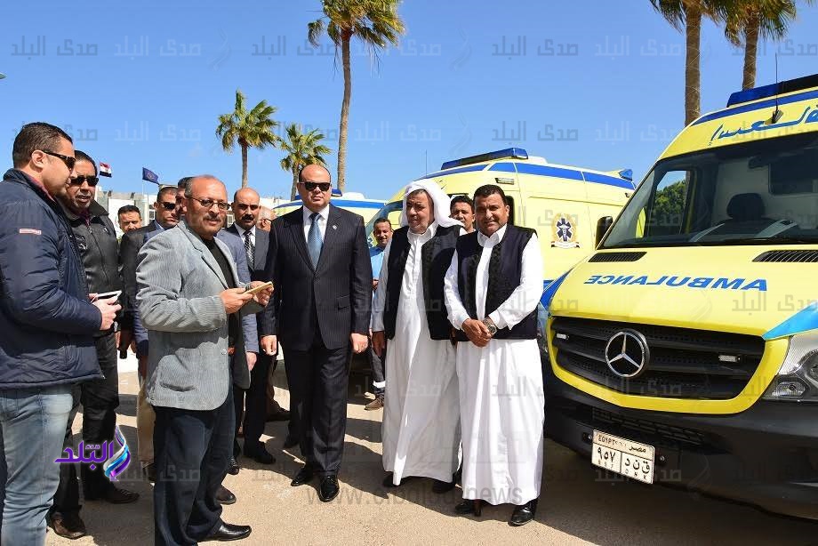 تفقد اللواء علاء أبو زيد محافظ مطروح 11 سيارة إسعاف دفع رباعي بتكلفة 13 مليون جنيه الذي تم دعم المحافظة بها مجهزة بأحدث أجهزة لإنقاذ حالات الحوادث علي الطرق السريعة بحضور الأجهزة التنفيذية وعدد من العمد والمشايخ بالمحافظة.