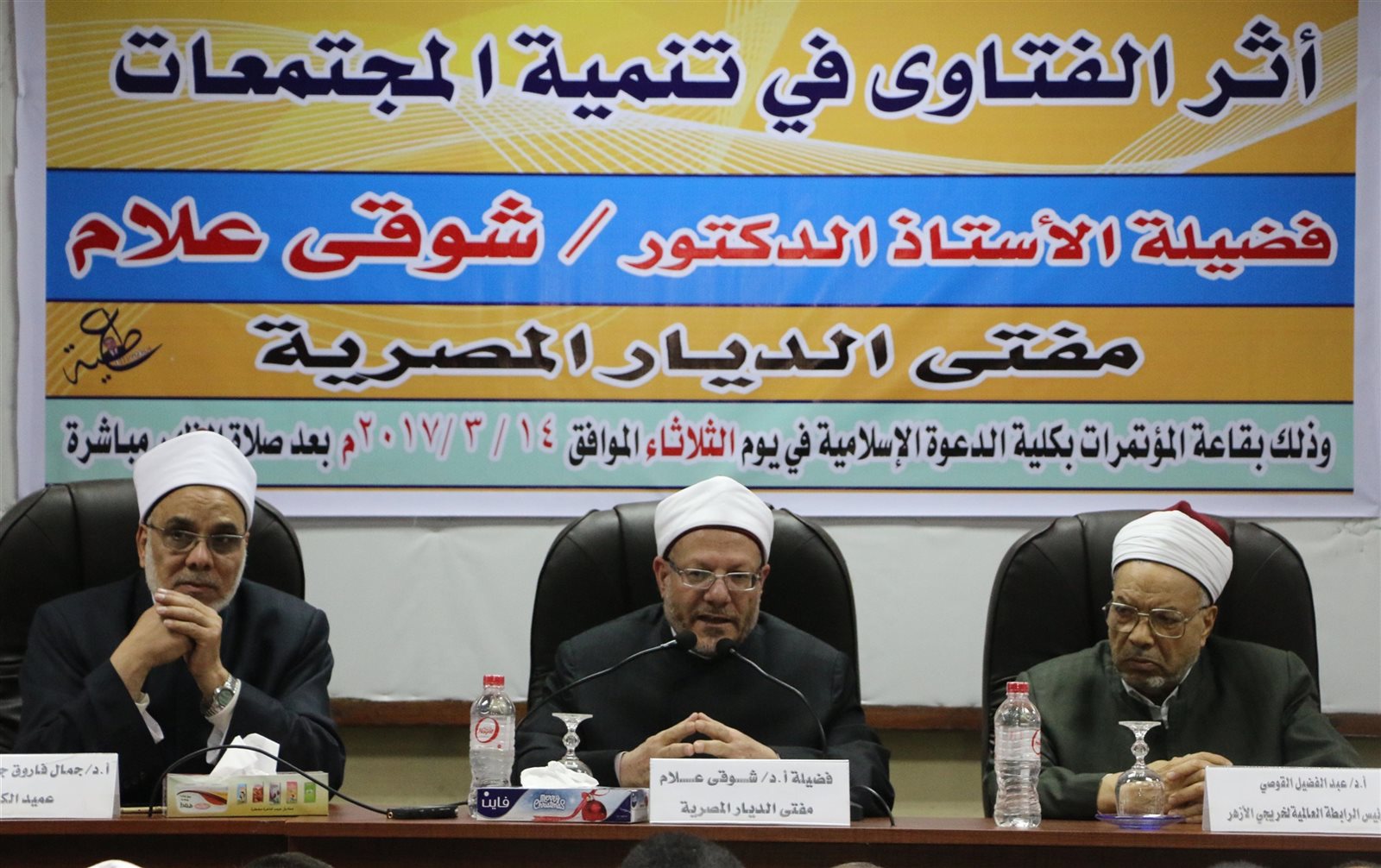 وقال مفتي الجمهورية، فى كلمته ظهر اليوم، الثلاثاء، خلال ندوة، "أثر الفتاوى فى تنمية المجتمعات"، التي نظمتها كلية الدعوة الإسلامية بجامعة الأزهر بالتعاون مع الرابطة العالمية لخريجى الأزهر، بمقر كلية الدعوة الإسلامية، أنه بعد ثورتى 25 و30 وجدنا هيئات تريد أن تناطح الهيئة العلمية للأزهر الشريف.