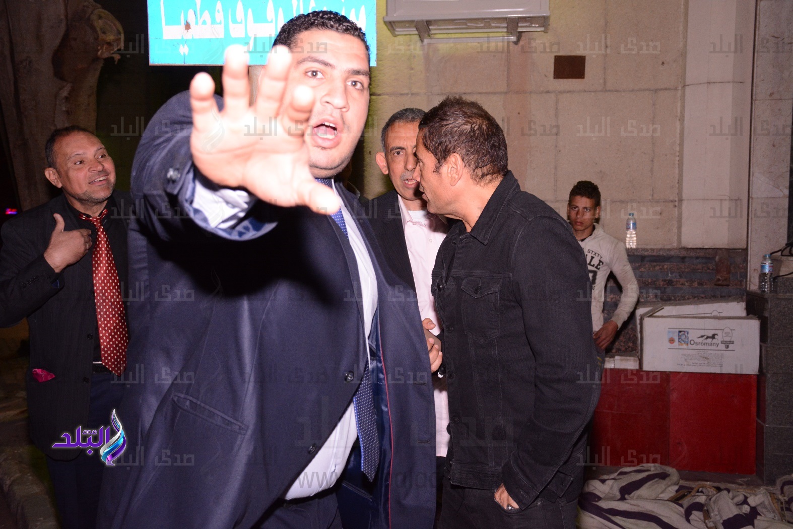 عمرو دياب يخرج بصعوبة من عزاء والد خالد سليم .. صور