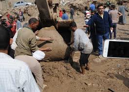 قال الدكتور محمود عفيفى، رئيس قطاع الآثار، إن تمثال رمسيس الثانى الذى تم اكتشافه فى المطرية ونقله إلى المتحف المصرى سيُعرض بحالته الحالية فى حديقة المتحف المصرى، وأنها ستعرض اليوم للجمهور، مؤكدا أن عمليات الحفر للبحث عن قطع التمثال ستستمر فى منطقة سوق الخميس بالمطرية.