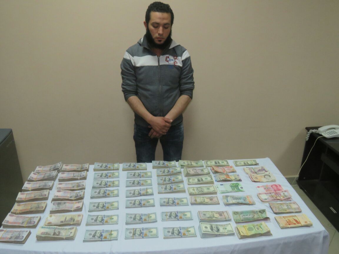 وعقب تقنين الإجراءات تمكنت قوة امنية برئاسة المقدم سعيد شعير رئيس مباحث الاموال العامة والرائد محمد اللوزى معاون المباحث من ضبطه وبحوزته 77147 دولارا أمريكيا " و 101000 دينار كويتي و 80000 جنيه و 2735 ريالا قطريا و 1124 ريالا سعوديا و- 500100 دينار عراقى و 365 يورو و500 دينار جزائري و 1319 دينارا أردنيا و 778 دينارا ليبيا و 1000 ليرة لبناني و200 ايوان صينى و 122 ريالا عُمانيا و 30 جنيها استرلينيا و 28 دينارا بحرينيا.
