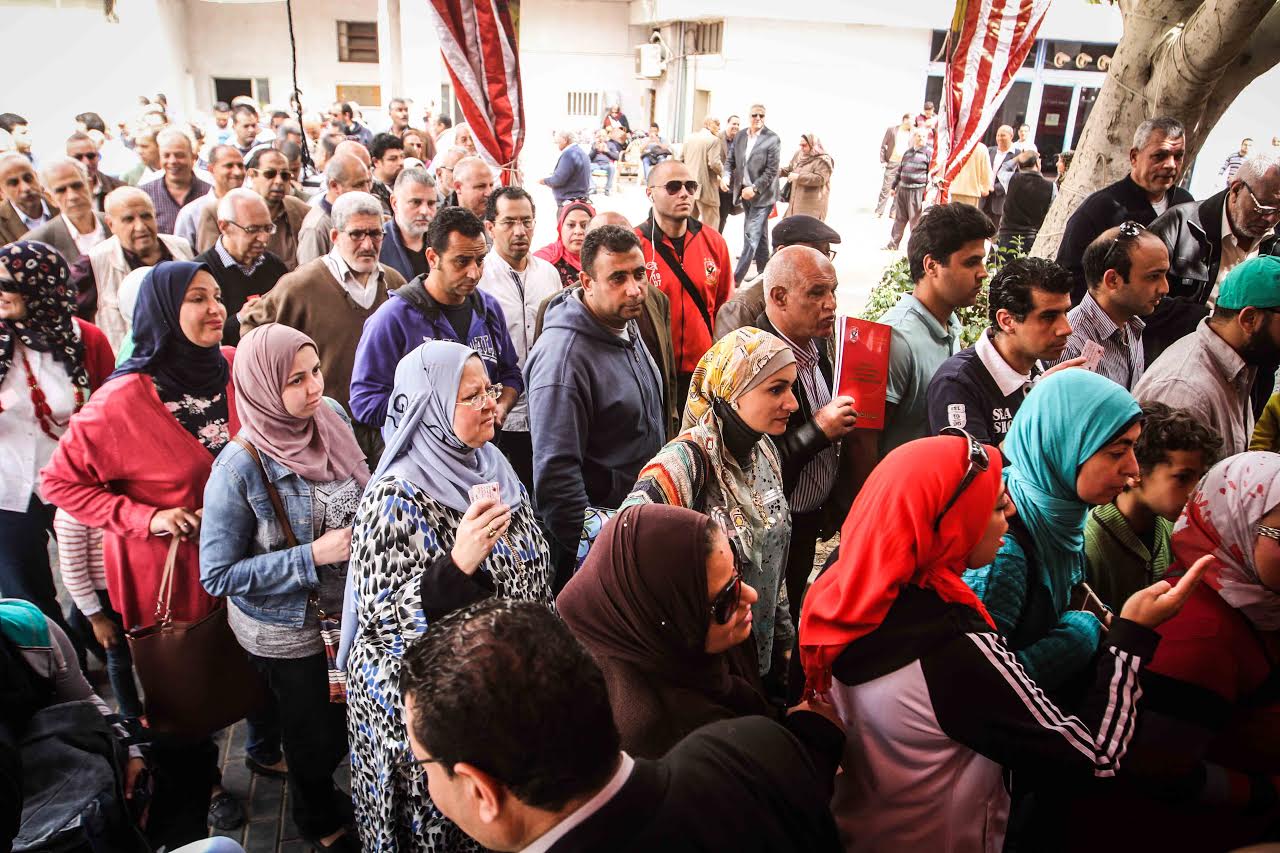 وتوافد أعضاء النادي الأهلي إلى مقر الجزيرة للمشاركة في اليوم الثاني للجمعية العمومية العادية لعدم اكتمال النصاب القانوني أمس.