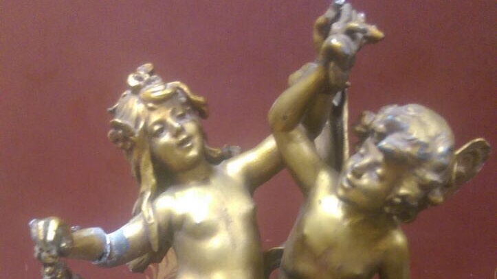 والقطع المضبوطة بحوزتهما "تمثال من النحاس بطول ٦٠سم لسيده تحتضن طفلها وتحت قدمها طفل علي شكل ملاك علي قاعده رخاميه وتمثال من البرونز ارتفاع ٣٥سم لسيده عازفه تحمل اله موسيقيه علي قاعده من الرخام وتمثال لملاكين بارتفاع ٤٥سم من البرونز عاريين علي قاعده رخاميه وتمثال لنصف امرأة عاريه الصدر بدون ذراعين بارتفاع ٣٦سم تشبه اله الاغريق علي قاعده رخامية، واثنين فازة من البرونز الحديد بطول ٤٠ سم عليها سيدة".