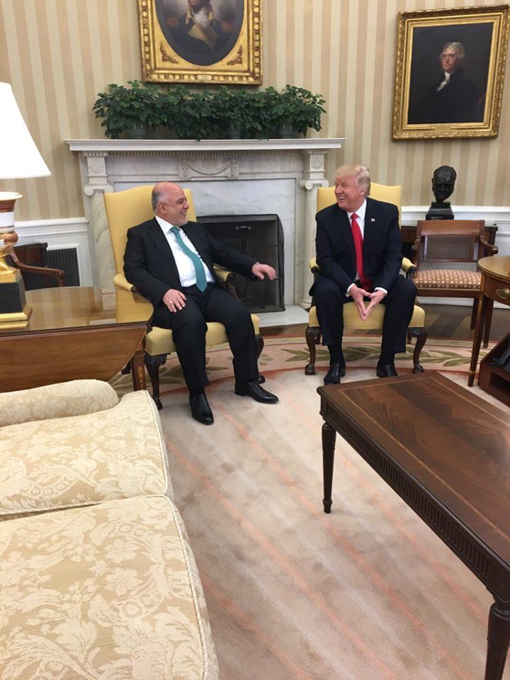 نشر الرئيس الأمريكي دونالد ترامب صورًا للاجتماع الذي جمعه ورئيس الوزراء العراقي حيدر العبادي، وذلك على موقع التواصل الاجتماعي "فيسبوك".